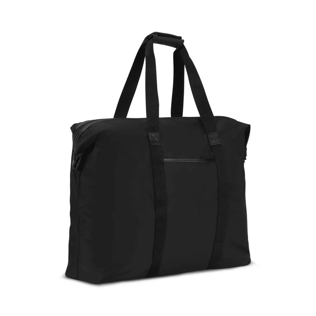 This weekend bag will be your best companion for all your getaways and romantic trips. The black nylon fabric is durable and easy to clean. It is the perfect bag whether you are going to a beach trip or on a countryside weekend. It will fit all you need for spontaneous adventures. Its inside space is well designed with pockets for just about anything you can think of. Even if the bag is overstuffed, it will not feel heavy on your shoulders thanks to its wide double straps. This stylish weekender will become your go-to choice when you are travelling light