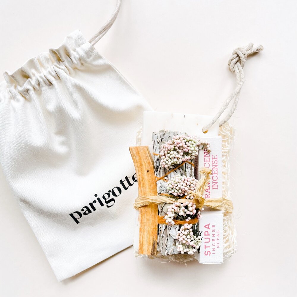 This superb Bath and Meditation bundle comes with a cotton drawstring bag.